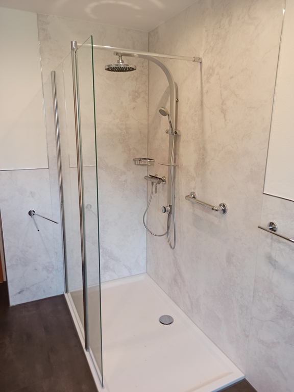 unsere neue Dusche mit dem von uns gewünschten teilweisen Umbau unseres Bades ist sehr schön geworden und macht uns viel Freude. Insgesamt war das eine runde Sache! Dafür nochmals vielen Dank, wir